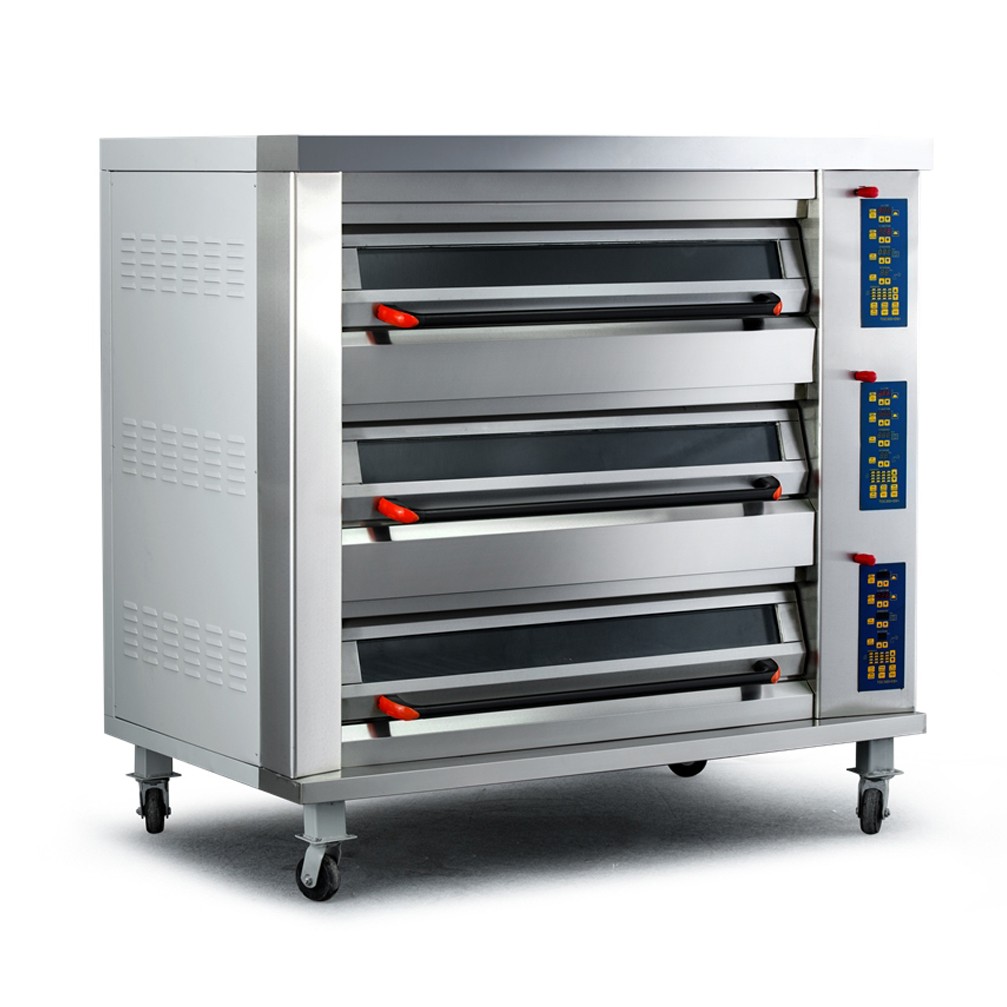 Introducing our high-performance Electric Pizza Oven, Model TT-O302P, designed for professional kitchens and pizzerias that demand efficiency, durability, and exceptional baking results. This state-of-the-art oven features three decks, providing ample space to bake multiple pizzas simultaneously while ensuring even heat distribution for perfect crusts and toppings. Key Features: Three Decks: Optimize your baking process with three spacious decks, allowing you to bake multiple pizzas at once. Durable Construction: Crafted with full stainless steel material, ensuring longevity, easy cleaning, and a sleek, professional appearance. Push-Up Door Design: Convenient door mechanism that opens upwards for easy access and space-saving operation. Powerful Performance: With a robust power output of 24.65 KW, this oven heats up quickly and maintains consistent temperatures up to 400℃, ideal for baking a variety of pizza styles. Efficient Heating: Equipped with 9 upper and 6 bottom heating elements, providing precise and even heat distribution across all decks. Spacious Chamber: Each baking chamber measures 1300x760x230 MM, offering plenty of room for large pizzas and other baked goods. User-Friendly Design: The oven’s front panel is made of stainless steel, enhancing its durability and aesthetic appeal while making it easy to clean. Reliable Power Supply: Operates on a 380V50HZ 3-phase power supply, ensuring stable and efficient performance in demanding kitchen environments. Specifications: Size: 1800x1200x1770 MM Weight: 750 KG Voltage: 380V50HZ 3PH Temperature Range: Up to 400℃ Heating Elements: 9 upper and 6 bottom This electric pizza oven is the perfect addition to any commercial kitchen or pizzeria, combining advanced technology with robust construction to deliver outstanding baking results. Upgrade your kitchen with the Model TT-O302P and experience the efficiency and quality that SAM PIZZA GIDA is known for. Thank you for choosing SAM PIZZA GIDA, your trusted source for professional pizza equipment and accessories.